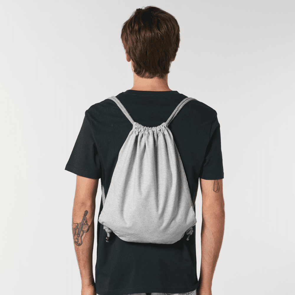 Sporttasche aus recyceltem Stoff mit starkem Kordelzug.